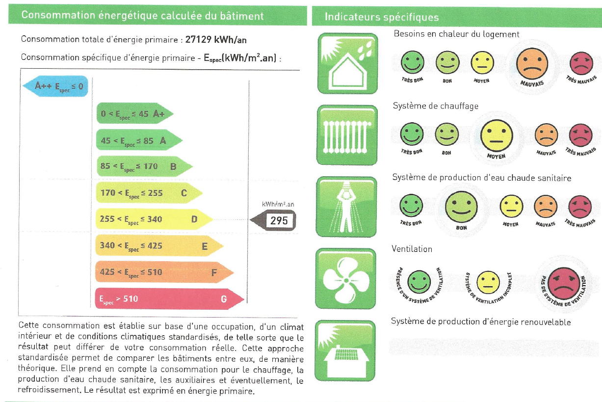 Specifiek primair energieverbruik : 295 kWh/m²a