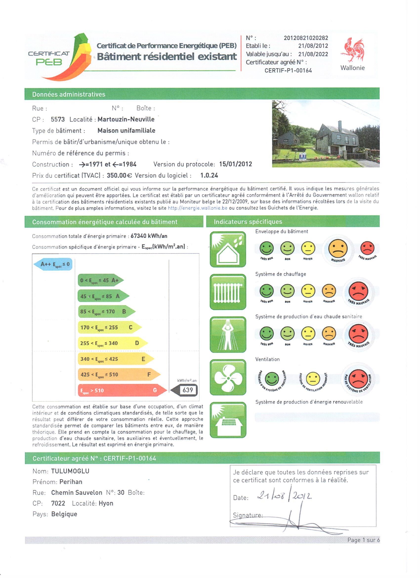Specifiek primair energieverbruik : 639 kWh/m²a