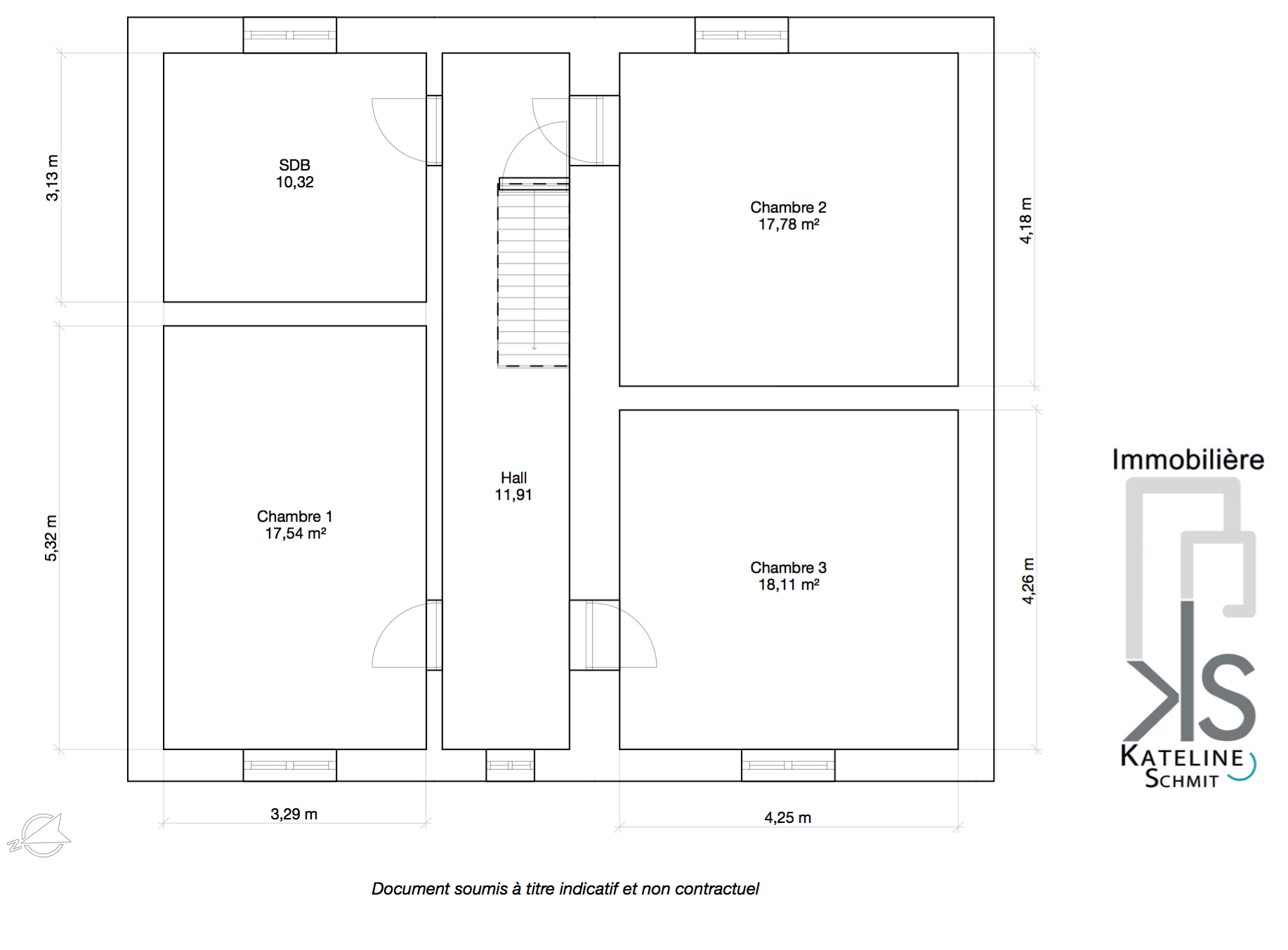 1er étage : Hall de nuit, 3 chambres, salle de bain (douche, lavabo).