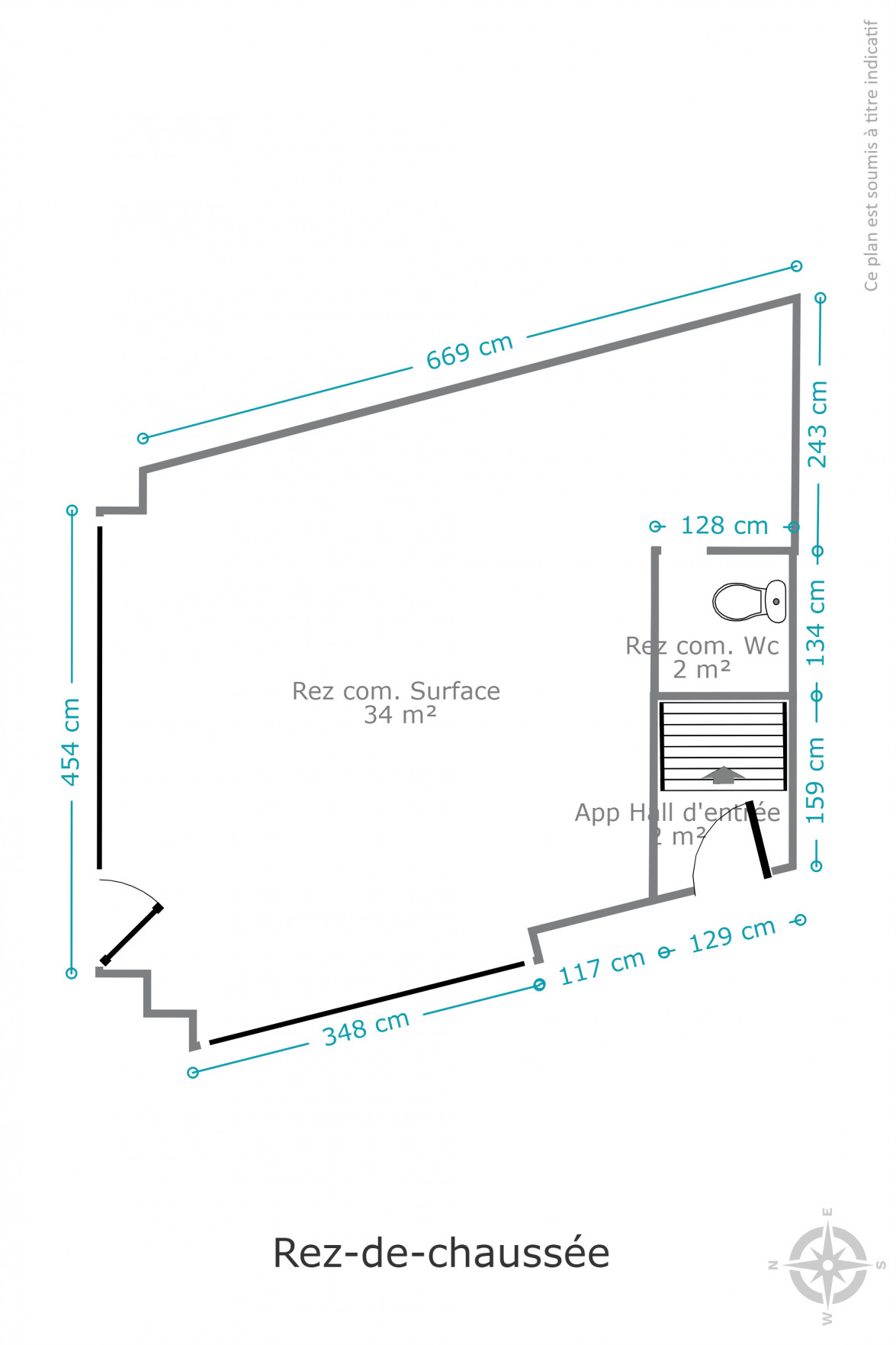 Rez-de-chaussée : surface commerciale de 36m² avec cabinet WC