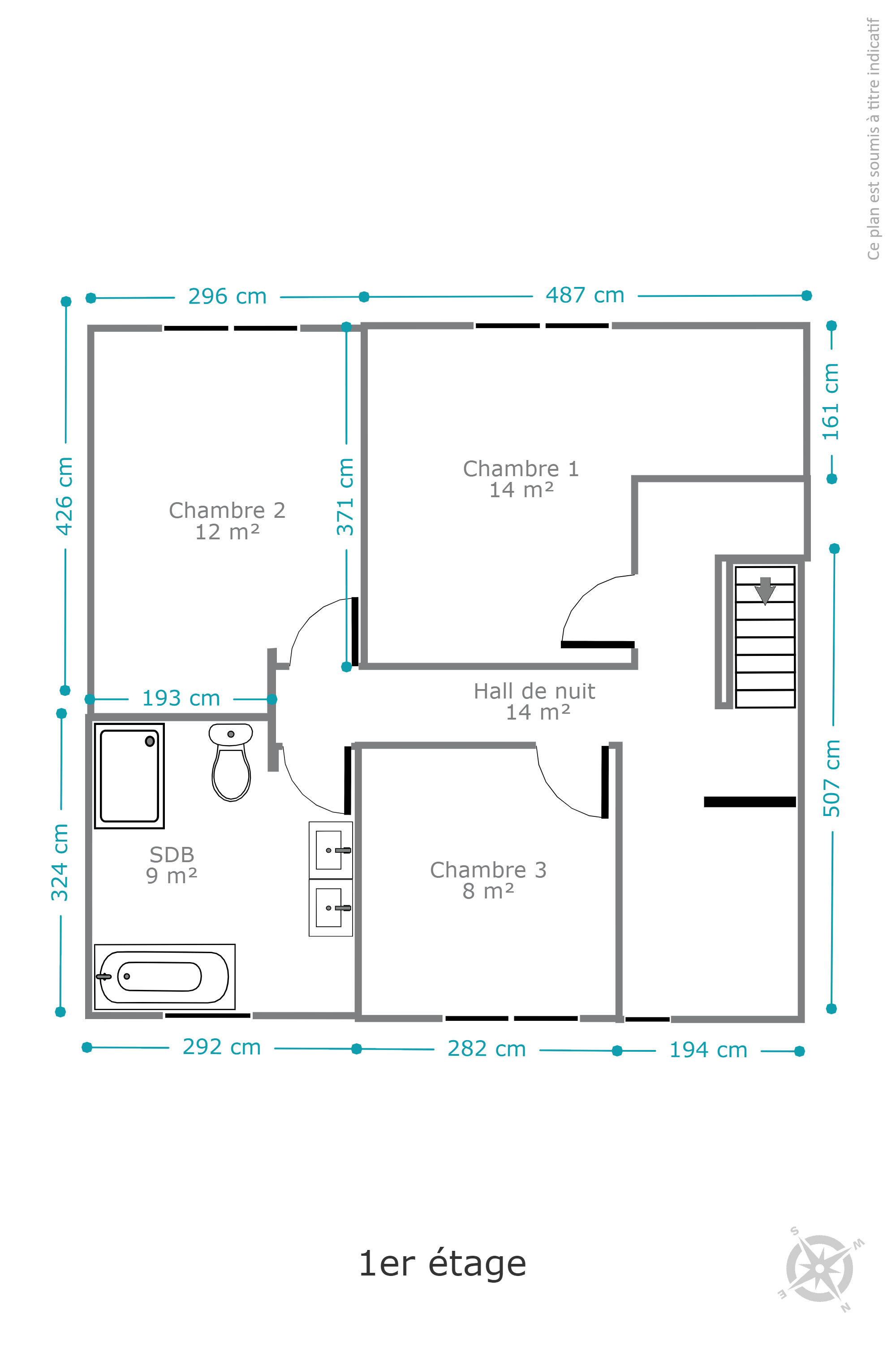 - 1er étage : Hall de nuit, petit bureau ouvert (idéal pour le télétravail), trois chambres confortables (dont une avec dressing), salle de bain avec baignoire et douche italienne.