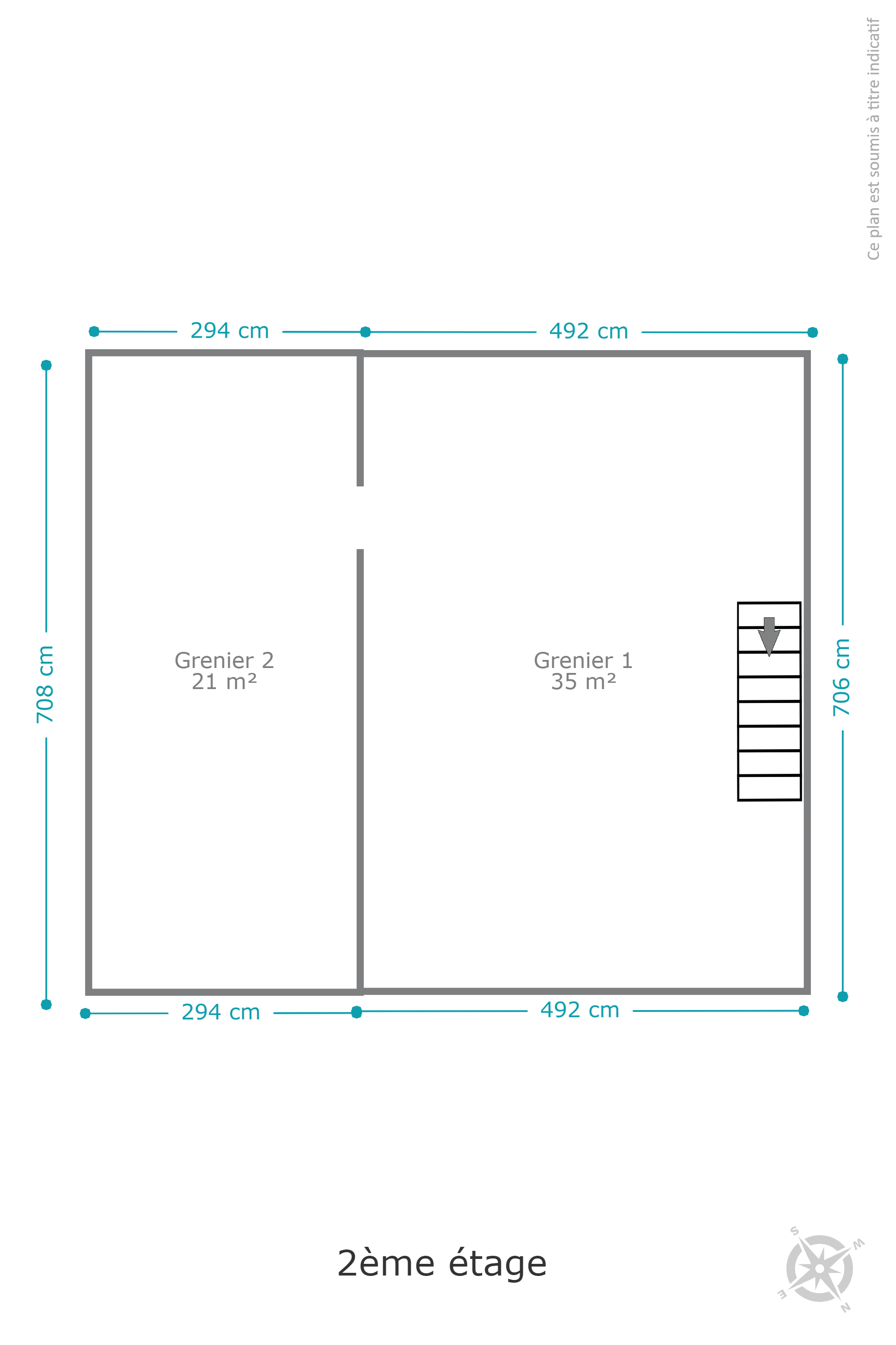 - 2ème étage : Beau grenier aménageable accessible par escalier fixe, isolé